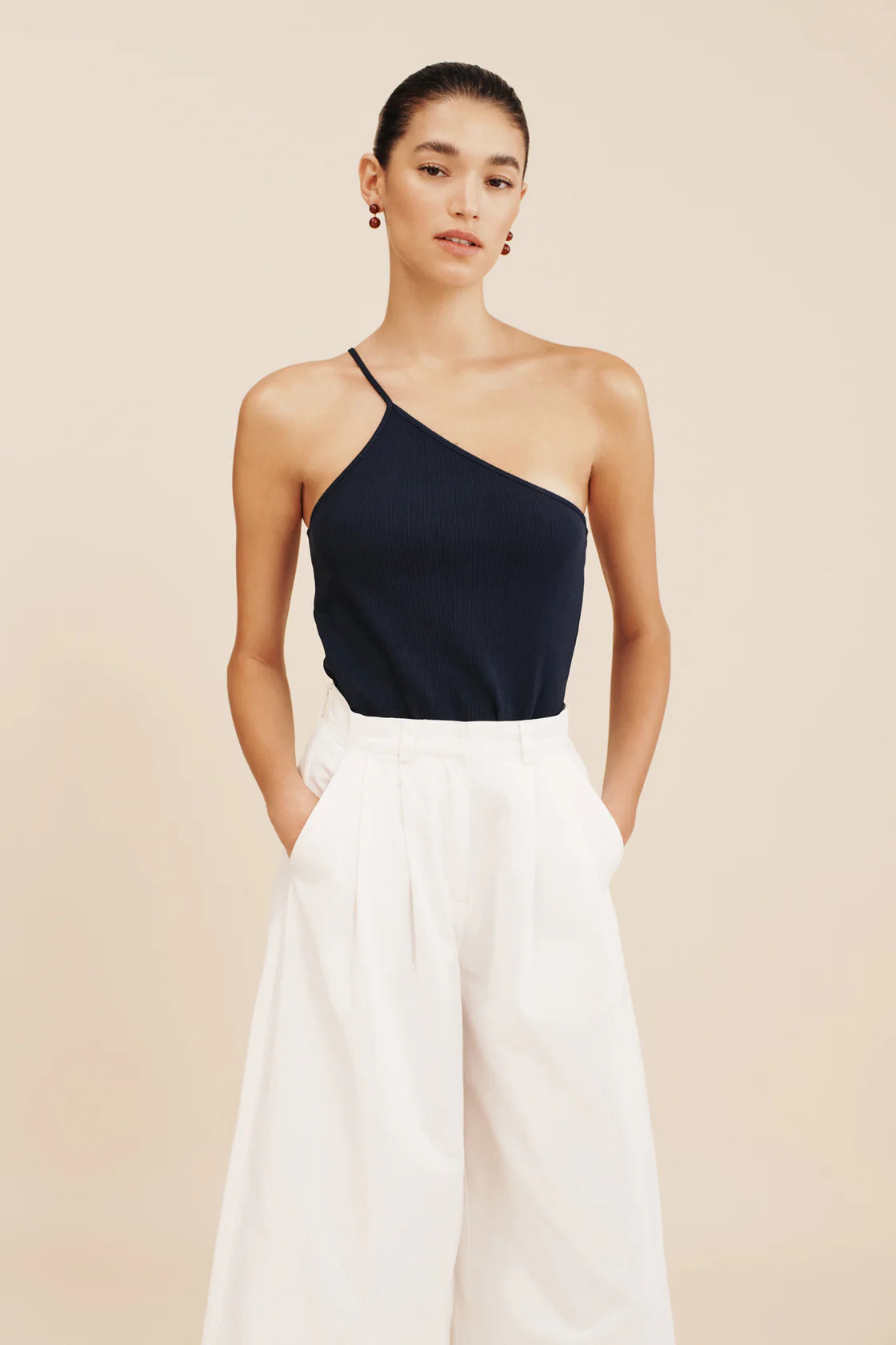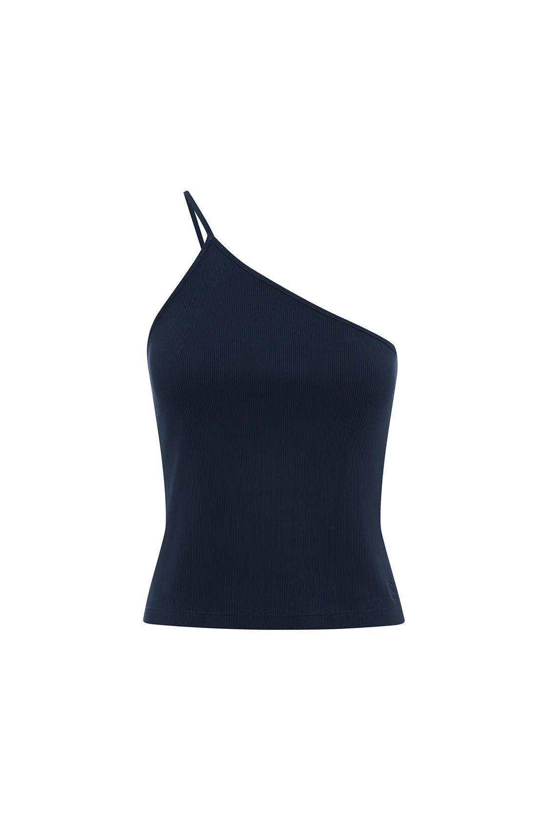A classic wardrobe essential, the Axel One Shoulder Tank is ribbed for a close fit and blended with stretch for comfort. It features an elegant one shoulder silhouette with a thin spaghetti strap. Soft, simple and perfect for layering.