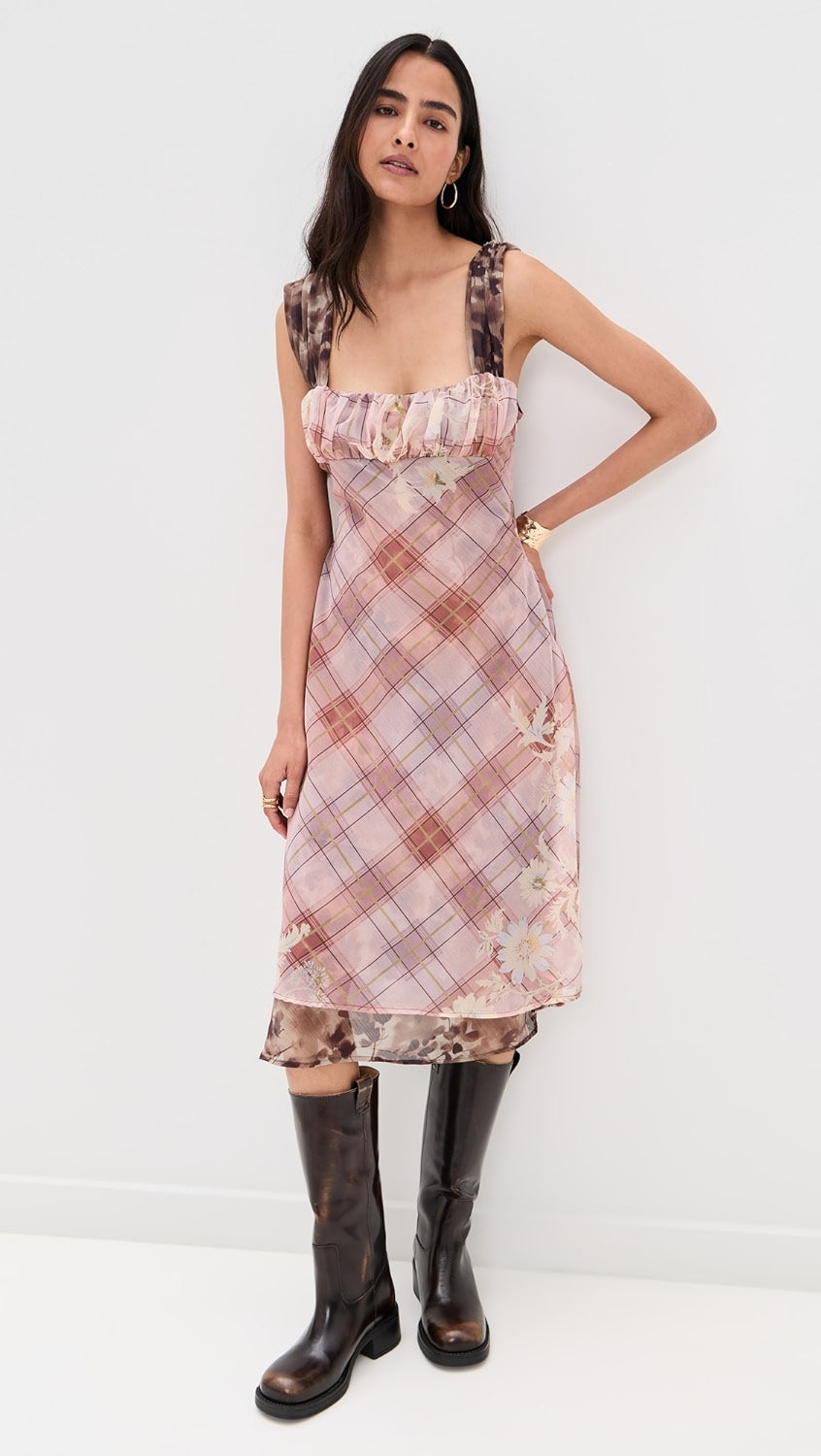 - The Free People™ Morning Dew Midi is a love letter to bohemian romance with a modern twist. Designed with a flattering square neckline, delicate ruffle straps, and an effortlessly flowing midi silhouette, this mixed-print slip dress is a true standout. Pullover styling makes it a breeze to wear, while the soft lining ensures all-day comfort. Infused with Free People's signature aesthetic, think exclusive washes, artful distressing, hand-stitching, and contrast lace, this piece reimagines vintage charm for today's free spirit.