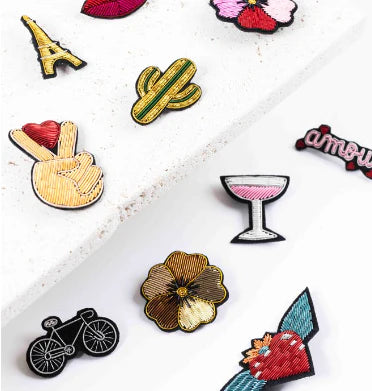 Embroidered lapel pin. Designed in Paris.