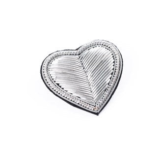 Add a touch of personality with our Silver Heart Brooch. Hand-embroidered in France using a traditional military technique, this brooch will elevate any outfit. Make a statement by adding one brooch or scatter a couple on your jacket. Perfect for stealing the show!